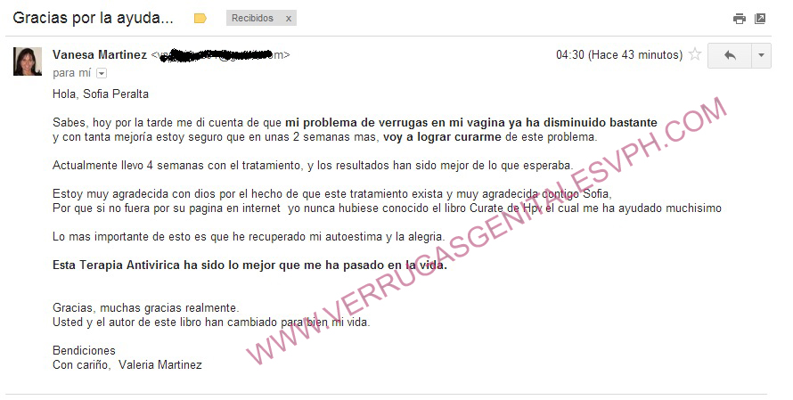 Llevo 3 semanas con el mismo y las verrugas ya cayeron por si solas. Estoy muy feliz, gracias de verdad muchas gracias.